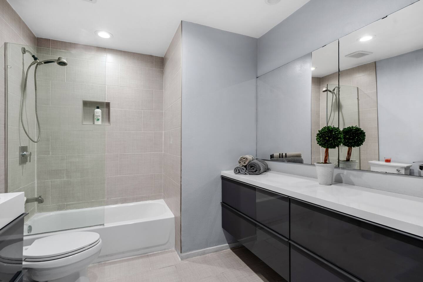 Very lush and calm neighborhood. Easy access to freeways. Beach is 15 minutes away and Disneyland is 12 minutes away